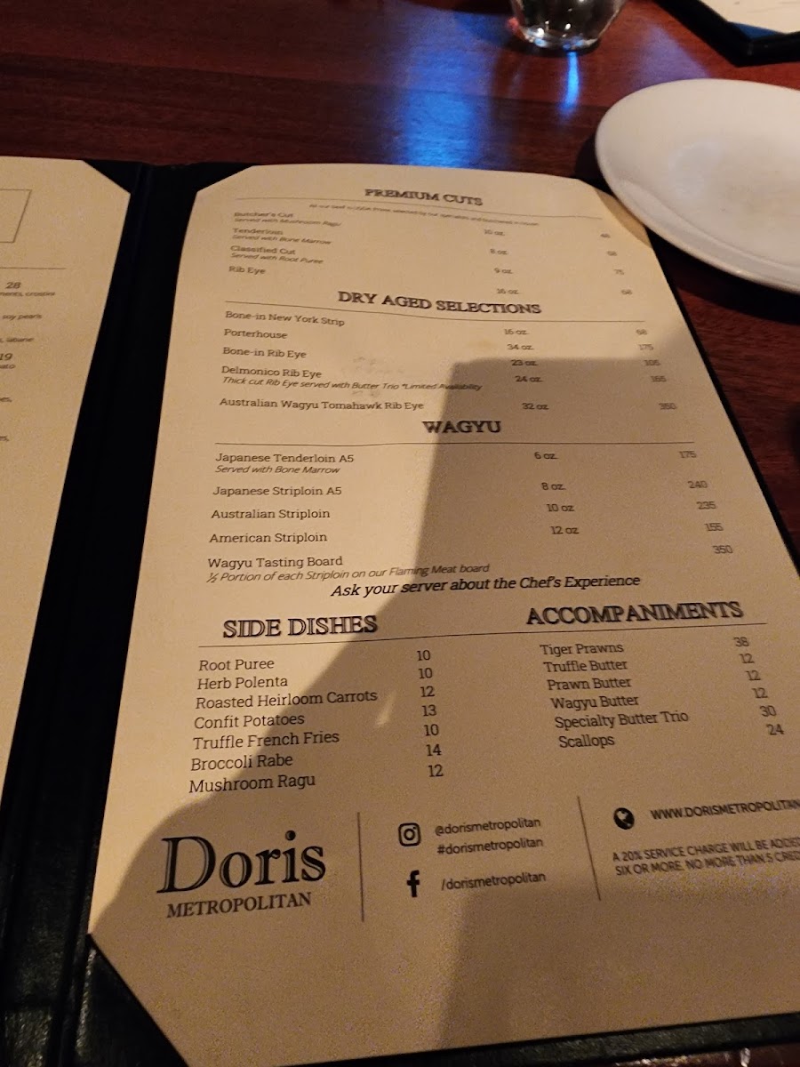 Doris Metropolitan New Orleans offers a thoughtfully curated menu that balances elevated steakhouse traditions with refined contemporary touches. Diners can expect a selection that embraces both hearty, dry-aged cuts and lighter, artfully prepared starters, making it an ideal spot for evening meals that invite lingering conversation and relaxed enjoyment.